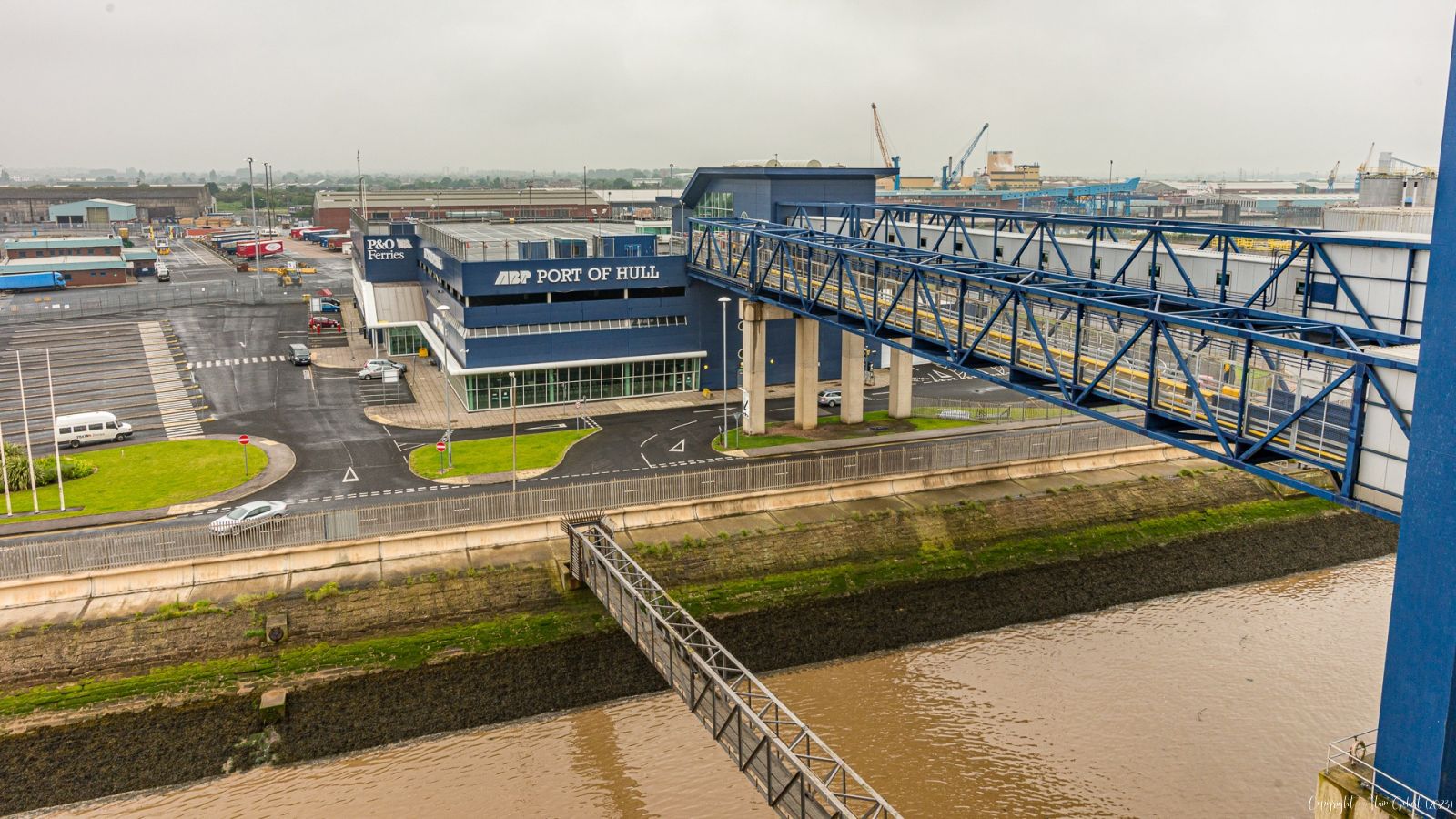 Le port de Hull nous accueille dans une ambiance brumeuse et grise.