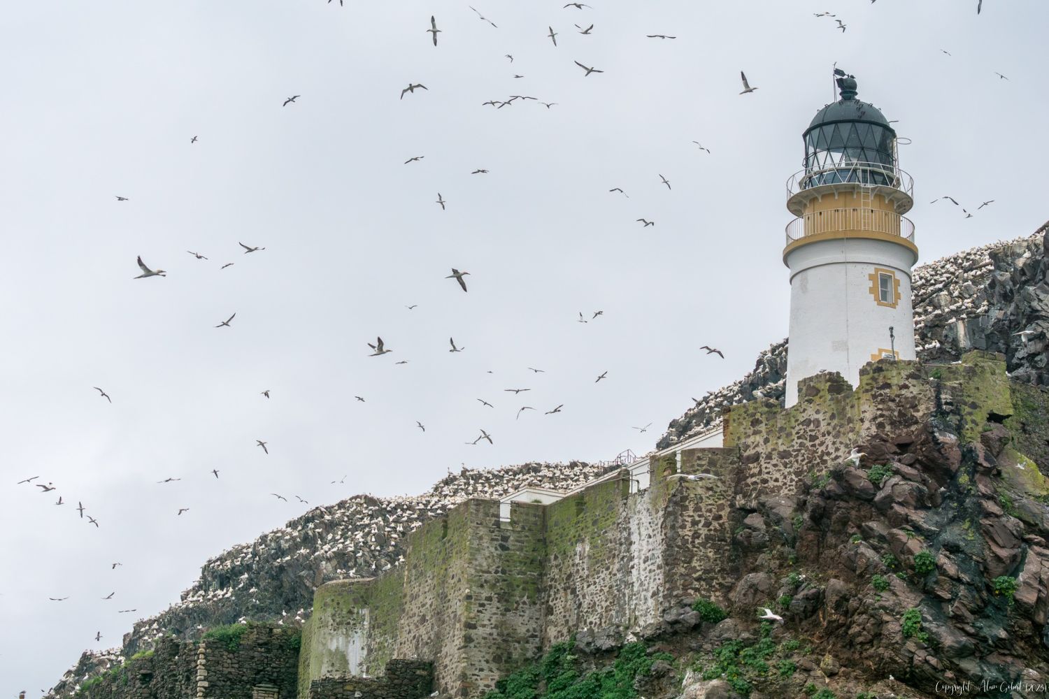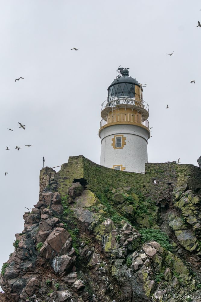 Une excursion trop brève mais vraiment intense près de ces grands oiseaux blancs, de ce rocher qui abrite un phare, les ruines d'un château et la chapelle St Baldred où un ermite y mourut en 606.