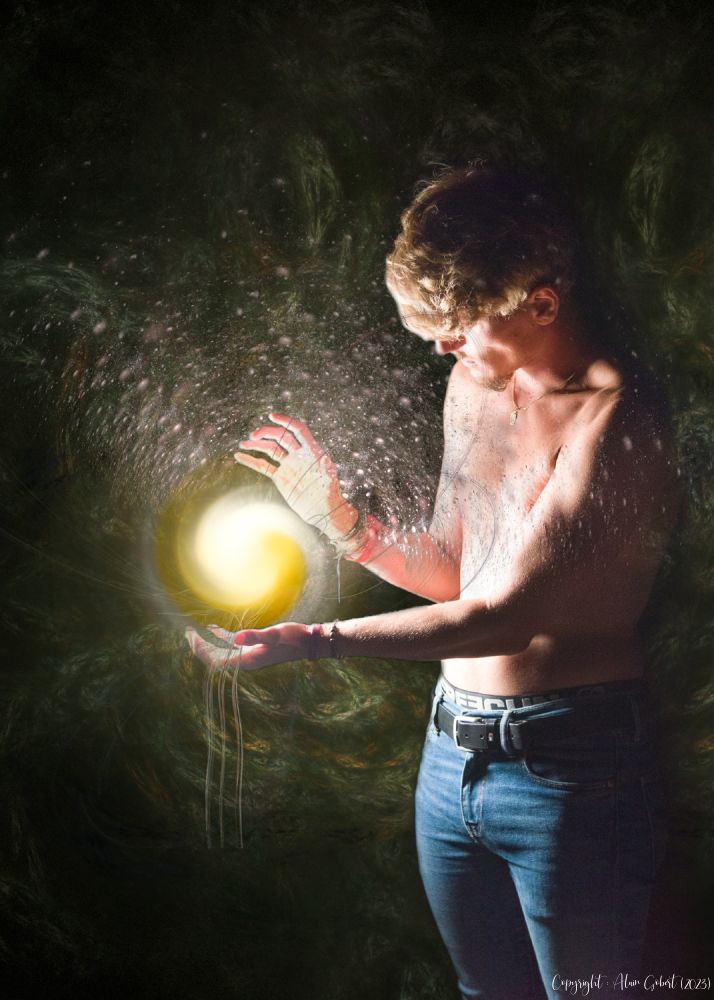 C'était une sorte de boule de cristal sans cristal, sans verre et sans support. Elle flottait au dessus de la planchette du rayonnage sans être suspendue ni maintenue sur les cotés. Elle m'intriguait beaucoup. J'approchais ma main vers l'objet lumineux.