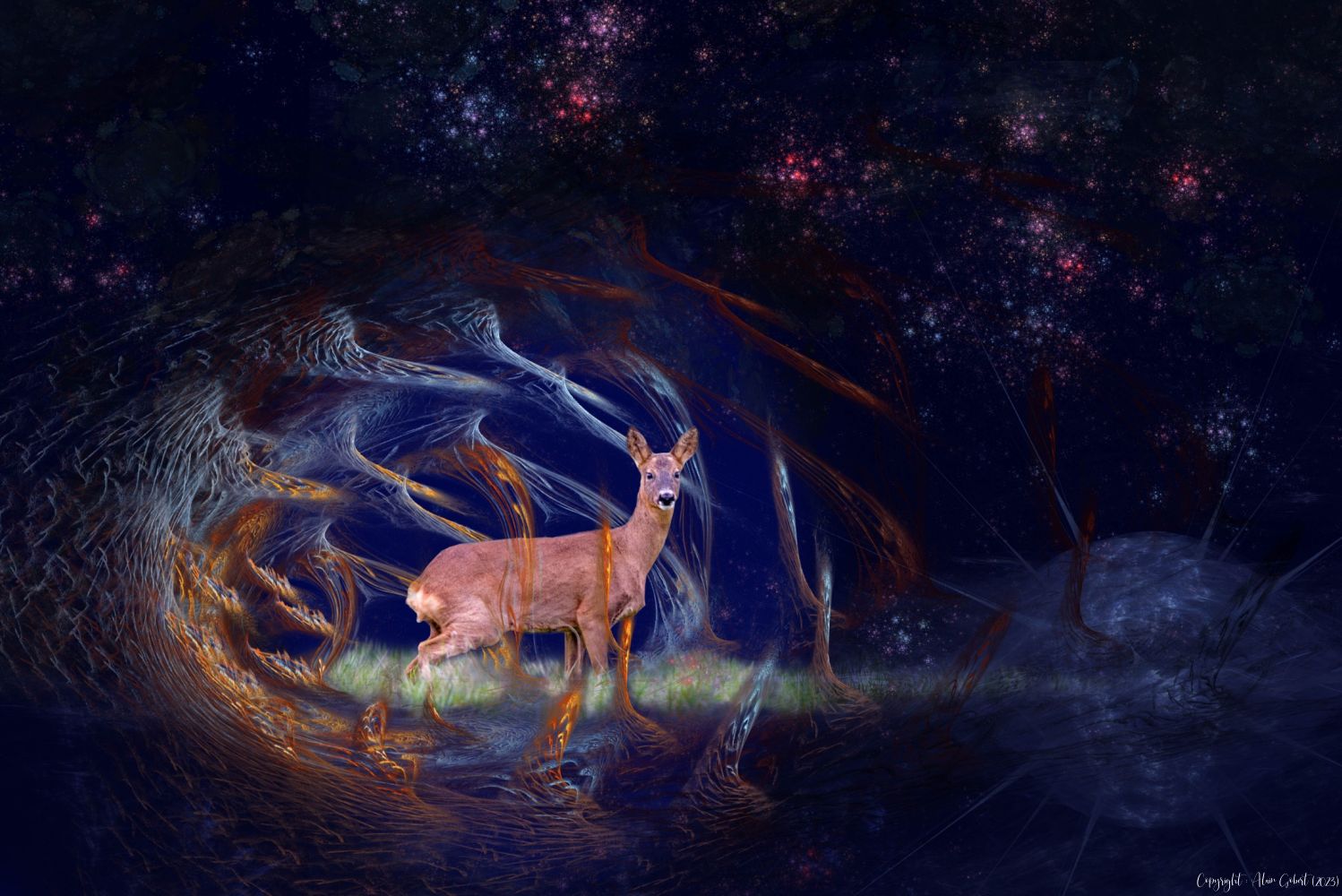 Le vent avait entamé un demi-tour en gonflant ses poumons. Il faisait résonner ses tambours et s'entrechoquer ses cymbales. Il s’apprêtait à faire alliance avec l’orage. Il n'en eut pas le temps. Le jeune cerf s'était avancé, se détachant du groupe. Il releva fièrement la tête, décidé à défier le vent. Ce dernier, arborant un sourire disgracieux, s'approcha du cerf, s'avançant encore, toujours plus près.