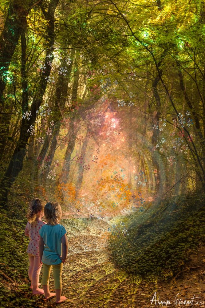 Alors que je tournais la page du livre mystérieux, je constatais que l'auteur avait oublié de me faire le récit du roi et de la sorcière. Il me transporta plutôt vers une forêt ensorcelée, où le vent créait une rengaine en effleurant les feuilles. Elles résonnaient comme un chuchotement de foule avant le début d'une grande symphonie.