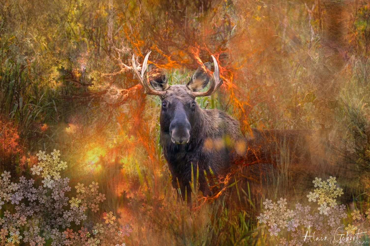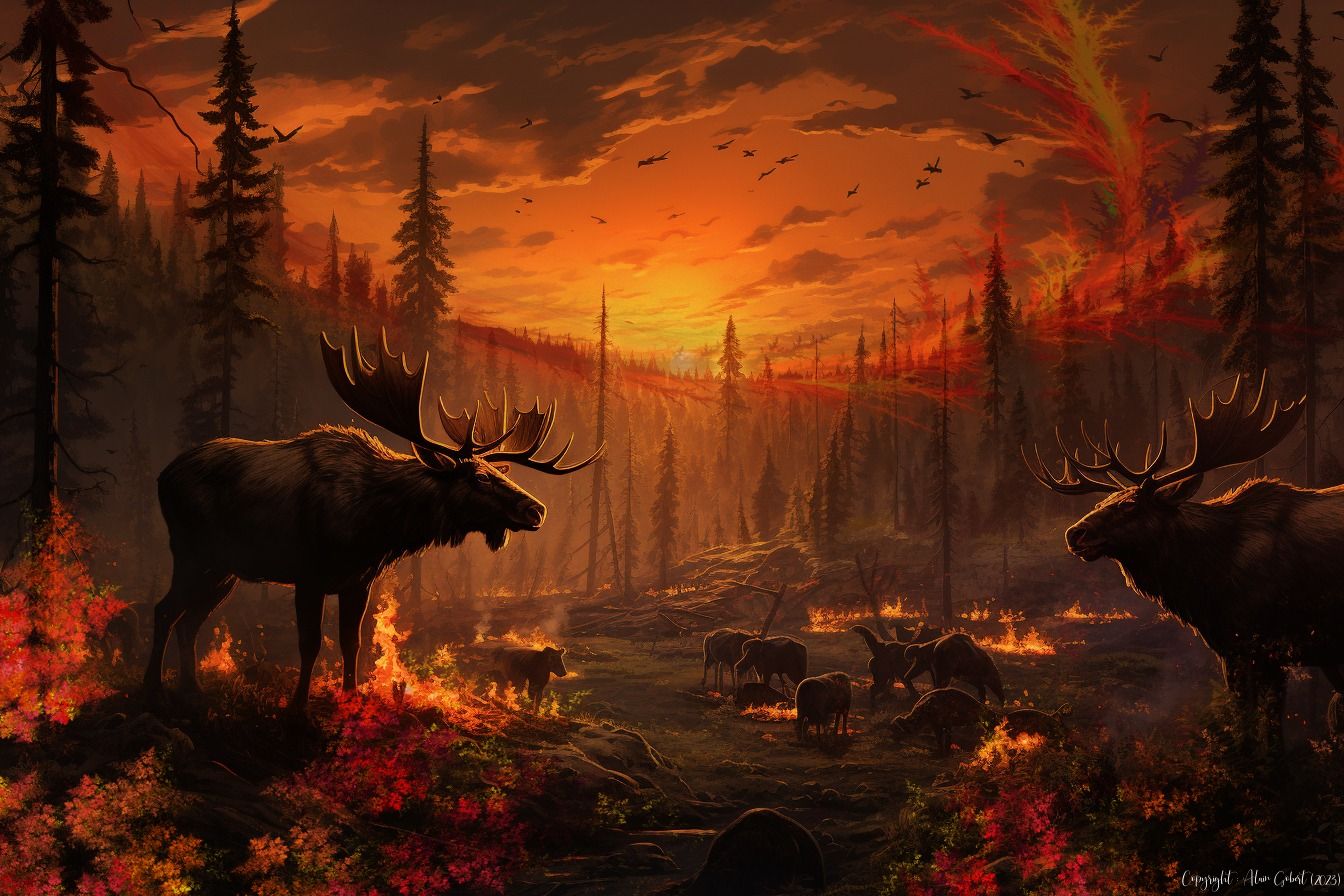 Depuis quelques temps, l'élan majestueux avait renoncé à l'idée de parcourir librement son territoire. Il avait établi son lieu de résidence à l'orée d'un bois, à proximité des zones humides qui lui offraient un certain degré de sécurité. Il évitait de s'aventurer au-delà de cette zone familière, qui lui procurait un semblant de refuge. Son fils, sa fille et sa sœur prenaient tour à tour soin de lui, lui apportant de l'herbe fraîche provenant de l'étang voisin, quelques champignons et de temps en temps de délicieux fruits rouges.