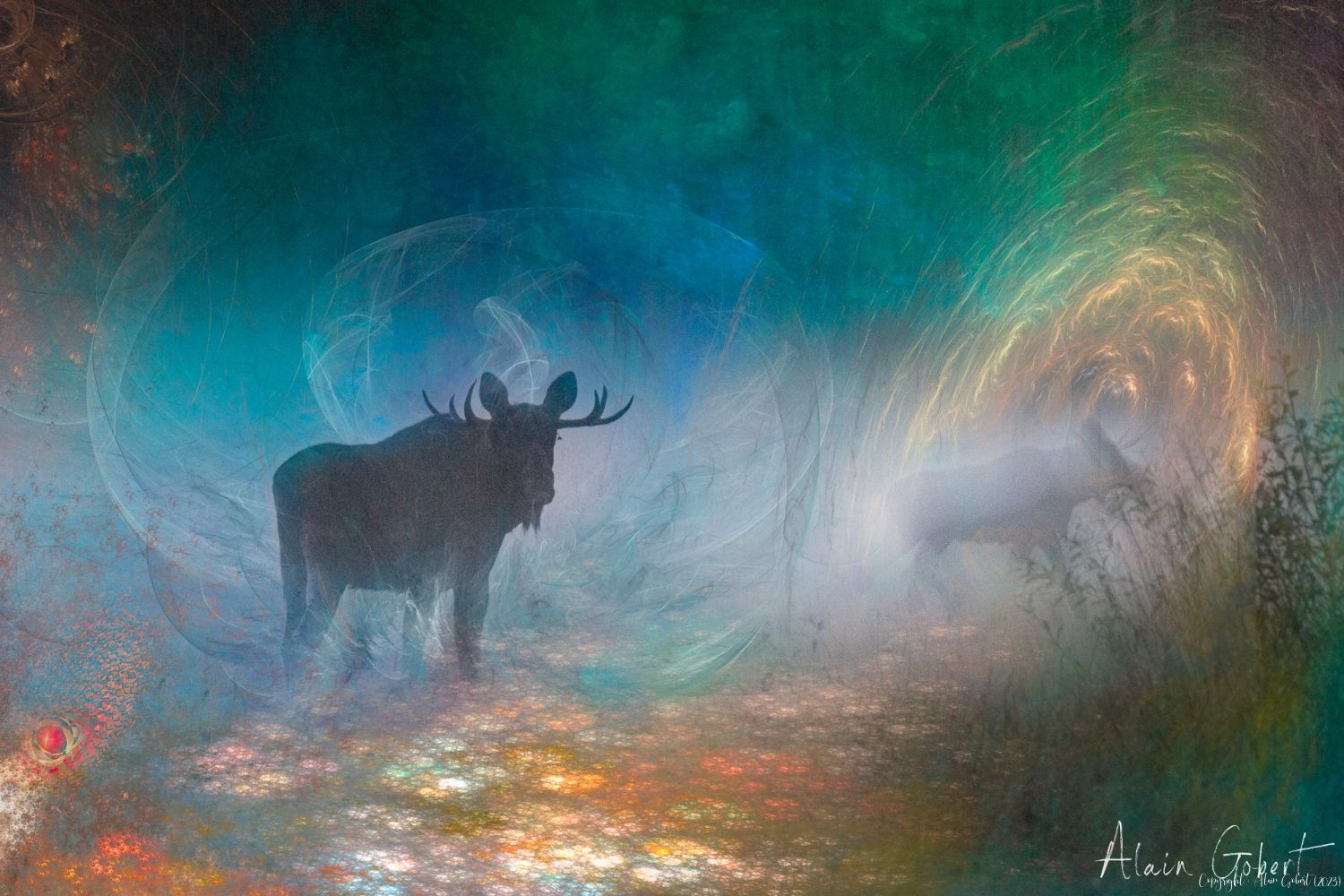 La musique du vent étouffait la cadence des sabots lents du vieil élan. C'était une mélodie triste et cotonneuse qui empêchait la fille d'Elan majestueux d'avoir une pensée ordonnée. Un froid subit envahit son cœur et elle se retrouva submergé par une sensation de solitude. L'évidence la frappa : son père était parti pour toujours. Elle fit demi-tour, entamant le chemin du retour.