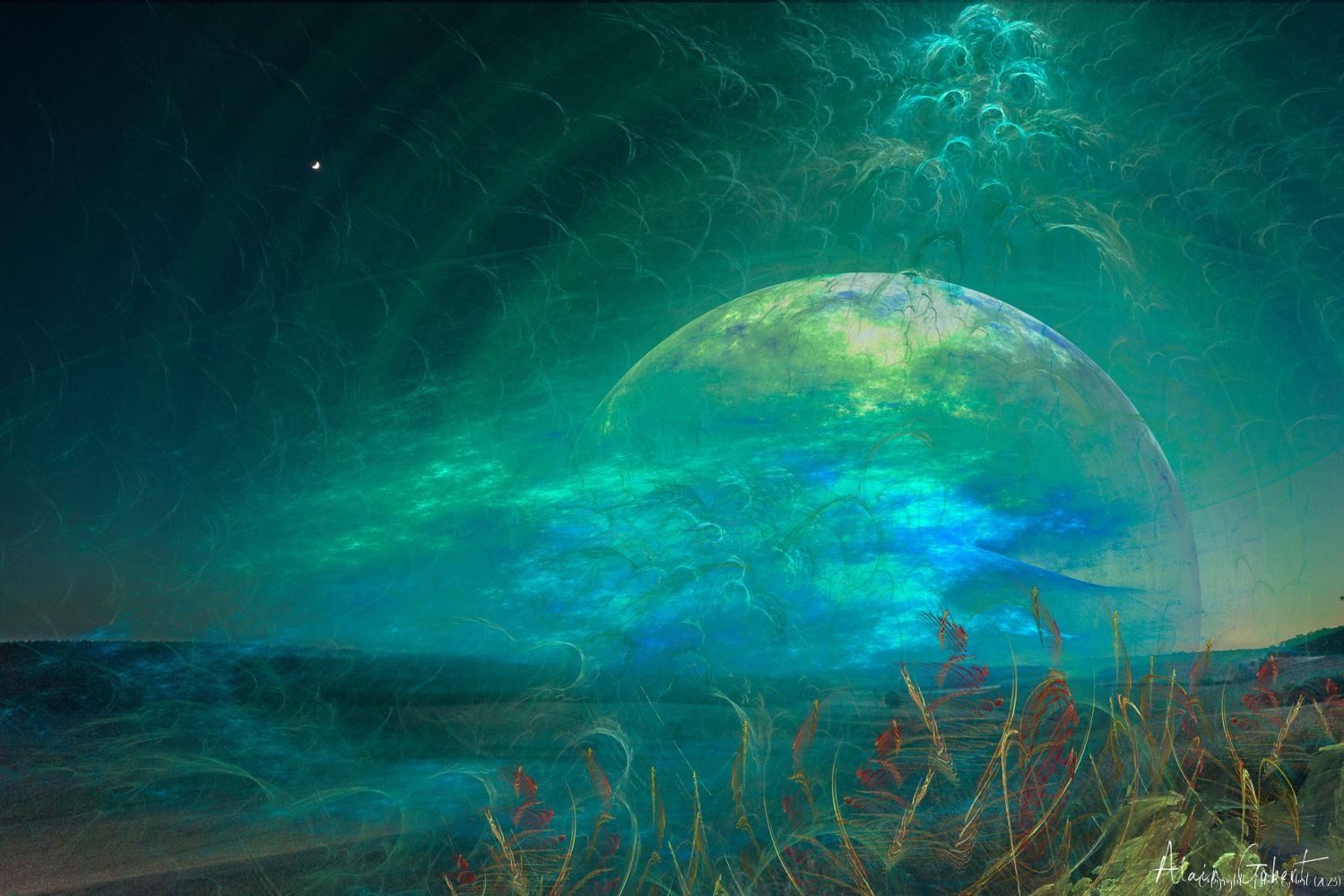 Une mystérieuse lumière sortie d'on ne sait où dessine dans le ciel une planète de substitution. Lumineuse et attirante, elle est voilée par une brume de couleur mentholée. Tout l'espace est empli d'une odeur semblable à celle que portait le ruisseau enchanteur où venaient se désaltérer les animaux du bois. A la brume se mêlait les vapeurs de plantes aux propriétés médicinales.