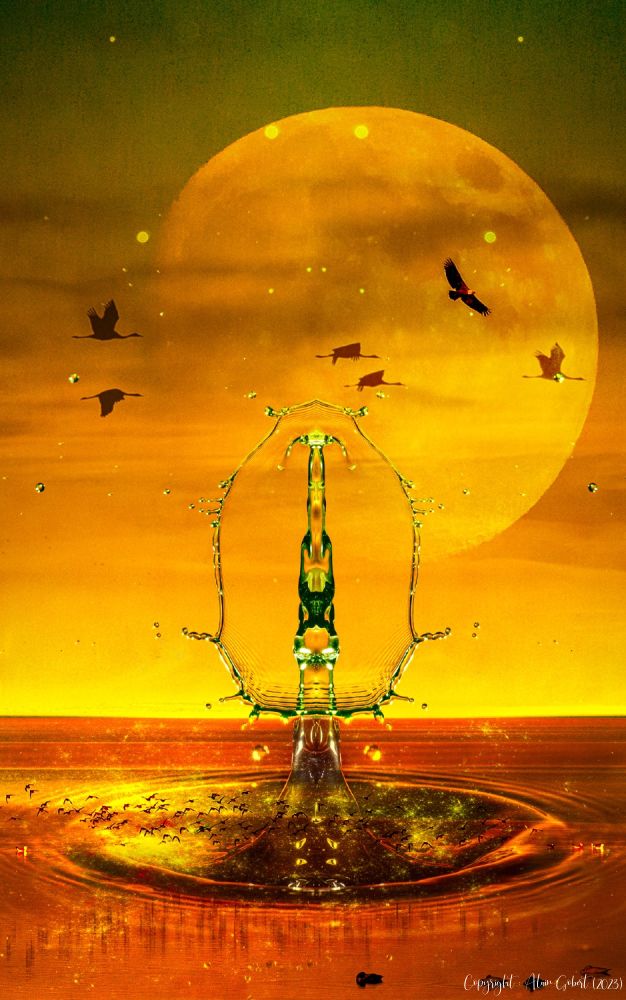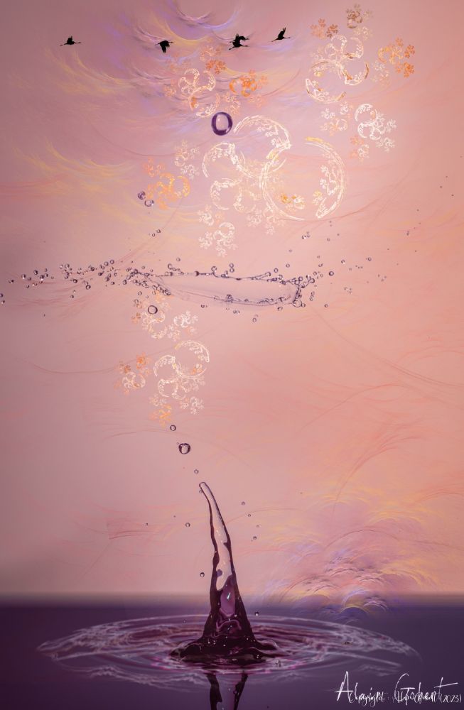 A la tombée de la nuit les bulles de la fontaine s'envolent si haut que les oiseaux peuvent les emporter.